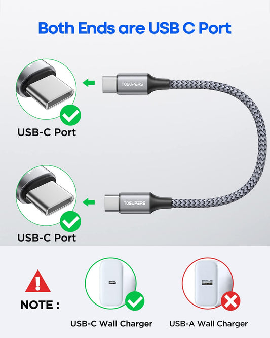 1Ft, 2 Pack Short USB C to USB C Cable Fast Charging 60W, PD Type C Charger Cord for Iphone 16 15 Pro Max Plus, for Samsung Galaxy S24 S23 S22 Ultra Z Flip6/Fold6, for Macbook/Ipad Pro
